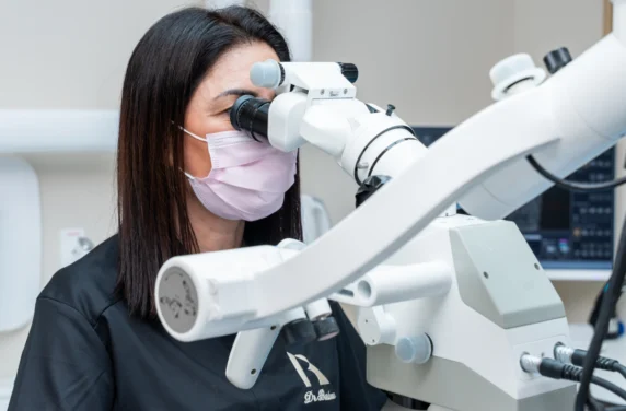 Le Dr Bordone effectue les soins selon les meilleures pratiques (mise en œuvre d’un champ opératoire, désinfection, obturation des canaux, etc.).